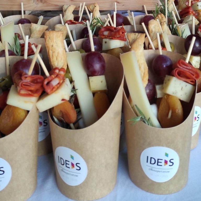 Pour un format moderne et rassurant, découvrez la Grazing Cup. Il s'agit d'une portion individuelle et clé en main (carton recyclé) qui remplace le buffet traditionnel. Chaque cup est un petit tableau gastronomique, composé de charcuteries, fromages, fruits et mignardises sucrées/salées sélectionnés en région.
